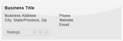 • Title, Address, Phone, Web Site Link, Convenient E-mail Form Link, Ratings and Reviews.