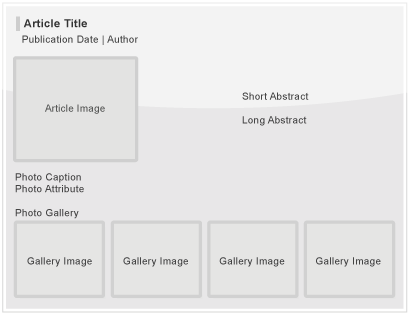 • Title, Publication Date, Author, One Image, Photo Caption, Photo Attribute, Photo Gallery (3 Additional Photos), Print Option.