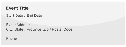 • Title, Date, Time, Event Image, Address, Phone, Summary Description.